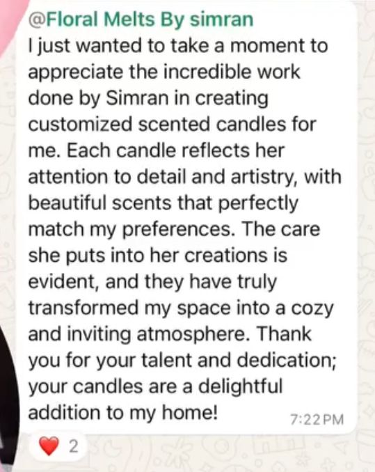 “Loved the packaging from Floral Melts. It feels so premium and perfect for gifting.”